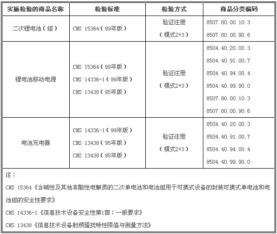 臺(tái)灣BSMI將二次鋰電池和移動(dòng)電源及電池充電器納入強(qiáng)制檢驗(yàn)項(xiàng)目